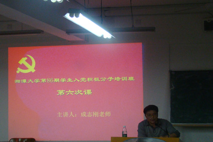 本次的授课结束,成志刚老师以自身经历讲述了入党的难度,要求同学们在以后的日子里对自己严格要求。接下来开展了湘潭大学第86期学生入党积极分子培训班结业典礼,几位学生代表上台发言,讲述了自己接受培训后的收获与感悟。在各学院负责人说明了培训班的基本状况之后,本次培训结束。