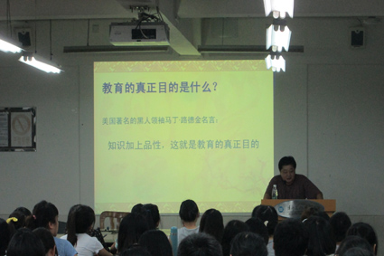 此次授课,陈书记分别从“勇担责任”、“学会宽容”、“学会感恩”、“讲求诚信”和“善待爱情”五个方面详细地分析了现代大学生普遍的心理状态和品行修养问题。并以此为依据解释了现代高校的教学目标,即:“培养造就社会事业的合格建设者、可靠接班人”。陈书记结合现代大学生的普遍现状指出广泛存在于现代大学生中的缺乏社会责任感的问题,呼吁现代大学生要以身作则,配合高校、政府、以及社会的教育工作,提高自身责任感。陈书记同时倡导大学生要学会宽以待人,将这种品格体现在生活的各个细节之处。