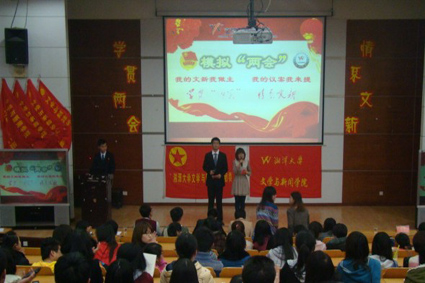 为深入贯彻落实党十八大报告中“着力提高教育质量,培养学生创新精神”的方针,3月23日晚7点,由亚洲精品国产精品团委学生会主办,亚洲精品国产精品团委学生会组织部承办的“模拟两会”活动在逸夫楼第二报告厅成功举行。担任此次活动评委的有文新院团委学生会主席团成员,到场的嘉宾有上届组织部部长王冰、吴海燕。张家麒和王爽星担任本次活动的主持人。