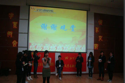 本次活动的主题为:“学贯两会,情系文新”,以“我的两会我做主,我的议案我来提”为口号。我院12级九个参赛班级分别从不同角度,为促进学校发展营造良好环境提出自己的建议。并配以精心制作的PPT,图文并茂地进行解说和阐释,此外,各班还在讲解过程中穿插了一些别致的小节目来增强台下观众的互鸣。整场活动精彩生动,于欢乐中传承两会精神,在细节中融入民生情怀。
