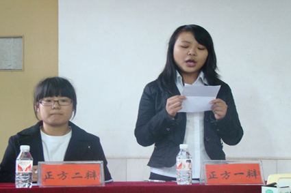 11月17日下午4点,我院“文心杯”新生辩论赛半决赛在法附楼102教室举行,本场比赛到场的评委有外国语学院辩论队队长彭姿、土木工程与力学学院辩论队队长郭帅,亚洲精品国产精品辩论队队长胡苾璇,副队长白月以及10级优秀辩手胡幸辉。本场辩论赛的正方是12广电2班,反方是12新闻1班,双方就“体育明星偶像化是否有利于体育的发展”这一辩题进行辩论。