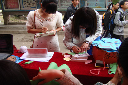我院“文心杯”新生辩论赛已走过十年历程,是我院具有较强影响力的活动,辩题征集工作作为其中重要一环,得到我院学生的积极响应。摆点处从早上开始就十分火热,“好活动就是它,它就是辩论赛,你有让自己两难的问题吗?参与我们的辩题征集吧!”风趣的宣传语吸引着往来路人的目光,很多同学驻足停留,积极参与,或是写下辩题,或是留下寄语,或是预测冠军。