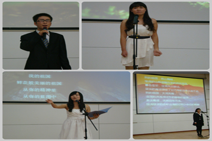 接下来,12位参赛选手身着正装依次登台朗诵,第一位出场的选手是来自12广电1班的孔燕同学,“你是嘹亮蓝天的号角,你是屹立不倒的情思”,一首《七一情思》淋漓尽致地抒发了对祖国无限热忱。随后出场的11广电1班的马歌同学一身白裙惊艳全场,她用饱满昂扬的热情,充满感染力的情绪,贴切的肢体动作,声情并茂地朗诵了食指的《相信未来》,带动了全场气氛,赢得阵阵掌声。来自12新闻2班的闫玉雪同学最后登场,一身旗袍亮相的她温柔婉转的吟诵了一首《致橡树》,至此12名选手全部表演完毕。