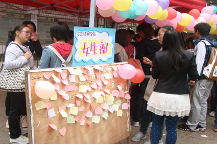 “美丽女生”活动虽然主要是面向女生开展的,但在摆点现场也不乏驻足的男生。女生部工作人员说,“听到这个活动名称,大家可能觉得这是为女生办的活动,其实‘爱青春、爱漂亮、爱美丽’的主题适合每一位大学生。”为此,女生部专门设计了“写心愿”的环节,男生女生都可以在贴纸上写下自己的心愿,希冀美好未来。