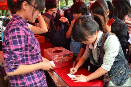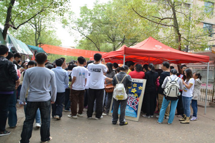10月19日,由亚洲精品国产精品团委学生会主办的第三届班服设计大赛在北苑进行摆点拉票,12级新生积极参与,现场热闹非凡。