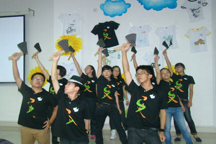进入班服展示环节,现场气氛活跃,形式各样的班服尽显12级新生班级风采。其中,12广电1班的“一起high青春”将现场气氛推向高潮,男生的反串表演,引来阵阵掌声;12广电2班的“在水一方”则以其唯美深情打动人心,悠扬的歌声,优美的舞姿,尽显文新学子的才艺;12中文1班“走在青春的路上”,以黑色为班服底色,展示环节中,他们舞动斧头,鬼魅而张狂,让人眼前一亮;此外,12广告2班采用白雪公主系列话剧展示班服,诙谐搞笑,同时不乏激情与活力。