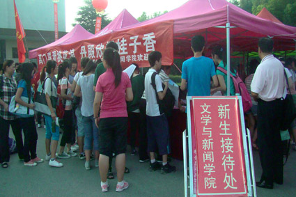 9月6日是新生正式报到的第一天,如人们所预料的一样,今天迎新活动迎来高潮,我院的新生接待处好不热闹。