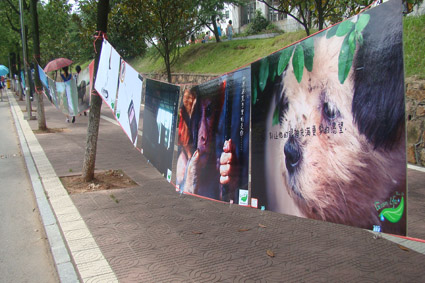 在本届新生到来之际,我院广告系于9月8日在泽园北路上举办了为期三天的10级学生广告习作露天展,并将在随后两天转战南苑篮球场和兴湘学院,作品展主要介绍广告专业发展的相关情况并展览主题为“绿色真生活 环保我先行”的学生作品。