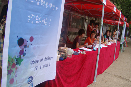 我院团委学生会有组织部、宣传部、青年志愿者实践部、文心报等14个部门,各部门职责不同、特点相异,可谓是各有千秋。北苑主干道上挂着由广告部手绘的14张海报,五颜六色的海报包容了每个部门的特色,吸引着往来的路人驻足欣赏。新生陆续到我院团委学生会招新摆点处咨询领表,团委学生会成员认真耐心地向前来咨询的新生介绍各部门情况。中午,北苑迎来人员流动的高峰期,到我院团委学生会摆点招新处咨询的新生人数也急剧增长。相对于9日而言,10日前来交表的同学居多,广大新生的表现积极、有礼貌,参与热情很高。