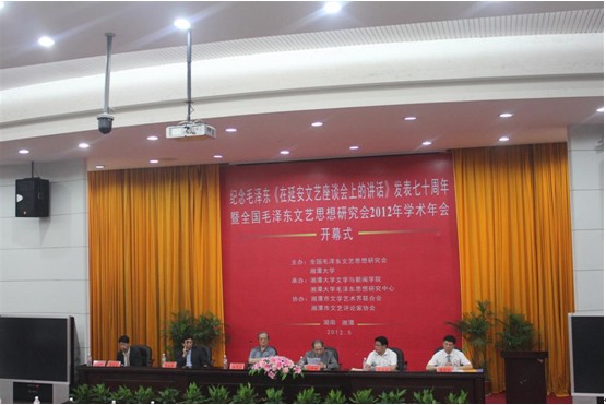 5月19日上午9时许,纪念毛泽东《在延安文艺座谈会上的讲话》七十周年暨全国毛泽东文艺思想研究会2012年会在湘潭大学逸夫楼第一报告厅隆重开幕。来自包括北京大学、中国人民大学等12所高校在内的毛泽东研究会成员以及各个省市区的社会人士代表出席了此次开幕仪式,全国毛泽东文艺思想研究会会长刘中树教授在开幕式上致辞,校党委书记肖国安列席会议。