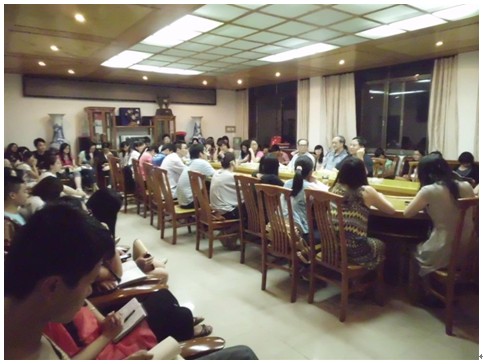 与其说今晚的讲座是一场严肃严谨的学术活动,还不如说是一场亦师亦友的对话交流。讲座伊始,两位先生就谁先开始还进行了一番谦让,最后还是在刘中树教授幽默风趣,轻松和谐的讲话氛围中开场。刘教授清晰地回忆了自己当年如何走向学术道路的种种标志性事件,虽然事件零散,思维跳跃性很强,但他确是如散文般“形散而神不散”,整个发言围绕“以文会友、多读诗书、勇于拜师”三个方面展开。其中讲到了他上大学时的许多逸闻趣事,引起在场观众的阵阵欢笑和喝彩,讲座内容看似跟论文写作直接联系不大,但却是写好一篇有思想又深度学术论文的良好奠基,正可谓“磨刀不误砍柴工”。最后,他特别强调研究生期间应有个详细的读书计划并努力执行,经常练习学术论文的写作,并且要有“坐冷板凳”的学术精神。与刘教授轻松幽默发言不同的是陆教授严谨有序的有关论文写作的“金玉良言”。他指出,写学术论文的过程就是一种能力的实践,思路的整理,应从以下两个方面着手锻炼:第一,要全面搜集与论文写作相关的材料,充分占有材料,做到沙里挑金,找出与论文写作相关的最尖端最有价值的材料。第二,选题范围要符合自己的兴趣爱好,大小适中,切勿大而不当,小而无间。陆贵山教授还为我们讲解了论文选题的四个限度:选题的广度、深度、选题的动态跟踪研究及其关系研究。只有在此基础上,才能做到稳健创新,从而写出新意和深意。