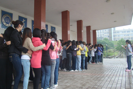活动流程分为四个阶段,首先进行的是名为“笑容可掬”的游戏,随后又在教练额指导下进行了“纸杯运水”、“传递呼啦圈”、“背靠背”等游戏。学生会三组队员相互竞争、相互协助,努力争取每个环节的小奖品,气氛热烈。