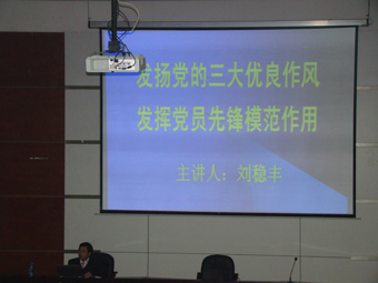 会上,刘稳丰书记重点向同学们讲述了发扬党的三大优良作风的知识,即:理论联系实际,密切联系群众和批评与自我批评。并向同学们指出这三大优良传统一直伴随着党一路走来,鼓励同学们在以后的生活中时刻注重发扬党的这三大传统。紧接着,刘书记谈到三大优良传统的历史与现实价值,指出,三大优良传统使党不断前进,始终发挥先锋模范作用。同时,刘书记还指出正是现在社会中党的一些问题逐渐暴露,所以迫切需要发扬党的三大优良传统。最后,刘书记从密切联系群众,理论联系群众等方面向同学们指出了怎样发扬党的优良传统。大会期间,刘书记的诙谐幽默的授课方式博得了同学们热烈的掌声。