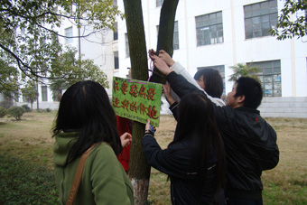 如,11级中文系为三教草坪制作了环保标语、为画眉潭制作了安全提示语,标题活泼,制作精美;11级新闻系为三教的教室制作了“保持安静”、文明提示语;11级广告系为秀山制作了箭头形状的环保标语和防火提示语;11级广电系则利用旧纸箱、铁皮水桶,并加以改造,为三教和勤人坡做成了实用并且美观的简易垃圾桶。