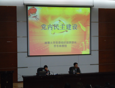 3月31日晚上7:00,湘潭大学党委党校第82期学生党员发展对象培训班第三次授课在逸夫楼第二报告厅举行,本次授课的主题为党内民主建设,湘潭大学党委组织部原部长李东林教授为主讲人,能源工程学院、外国语学院、国际交流学院、兴湘学院以及亚洲精品国产精品的党员发展对象参加了本次授课,湘潭大学党委组织部党委党校陈庆之老师担任主持人。