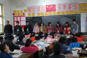 此后,针对老师们所提到的学生面对升学压力、大学习动力不足等问题,团队成员们主动走入学校的两个初三班级,为即将参加中考的学生加油打气,并就自己的学习经历为他们传授经验,予以鼓励。进入教室,学弟学妹们表现出了极大的兴趣,跟哥哥姐姐们热烈讨论。他们大多询问了如何有效地学习、缓解压力以及大学生活的情况等问题,成员们都一一耐心解答。活跃的气氛下一堂课很快结束了,团队成员们纷纷留下了自己的联系方式,在学弟学妹的欢送中离开了学校。