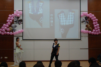 3月11日晚7点,“魅力三月伊人秀-DIY服装展示大赛”在逸夫楼二报隆重举行,此活动由我院团委学生会女生部承办,学生会主席团担任比赛评委,女生部前任部长黄鑫作为特别来宾参加了本次活动。