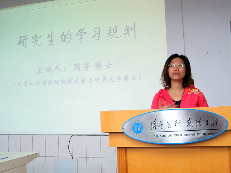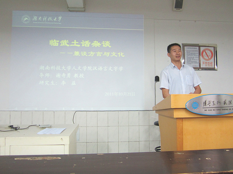 论坛围绕研究生的学习规划、临武土话与方言文化、消费时代理论研究的困境与思考三个主题先后展开进行。首先,我院比较文学博士研究生周芳以自己的亲身经历简练而精辟地向大家介绍了研究生生活应如何合理规划,比如,学习目标必须十分明确,学习过程中选准一个方向坚持不懈地努力,在人生的道路上应懂得取舍等,建议中肯、切合实际。接下来,湖南科技大学人文学院汉语言文字学2009级的研究生李益以他的学术论文为载体,向大家简单介绍了湖南临武方言的相关情况,展现了他的学术研究能力,也让新一届的研究生们有所启发。最后,我院2010级文艺学专业研究生王园波以一篇诙谐而深刻的论文浅谈了消费时代理论研究的困境,并指出在理论的研究视域中应如何处理好责任、传承、创新之间的关系,见解独到深刻,大家心领神会,论坛现场气氛活跃。