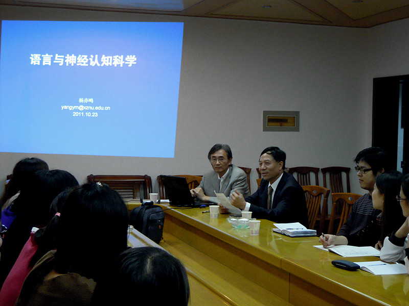 10月23日晚上,徐州师范大学副校长杨亦鸣教授在第三教学楼五楼会议室作了一场主题为“语言与神经认知科学”的讲座,文学与新闻文学院院长季水河教授主持了讲座。