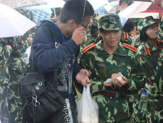 早上6时许,我院新生按教官要求整队集合前往第二田径场。由于全校新生众多,加之过程中风雨交加,等待时间较长,尽管如此我院新生仍然严守队伍纪律,展现了文新人良好的精神面貌。