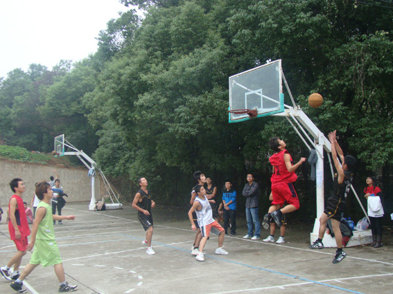 赛场上,球员们激烈地演绎篮球之间的交锋,赛场下,啦啦队充满激情地呐喊着,为自己的球队加油。他们采用各种各样的口号为球队助威、鼓劲。他们以火一样的热情,支持着他们的团队。在活力四射的氛围中,本场比赛结束。
