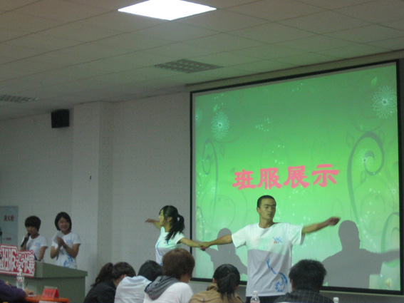 比赛正式开始,第一个上场展示的是10级广电二班的同学们,他们一上场就掀起了本场比赛的第一波高潮,过程中掌声不断,带热了全场的气氛。随后出场的几个班也凭借华丽的PPT展示,出色的讲解,精彩的表演赢得全场的掌声。比拼过程中,各班加油的口号声响彻全场。