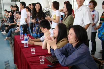 5月11日下午四点钟,我院女排与数学院在体训馆展开了日新杯女排比赛季军的争夺。我院杨向荣副教授和研究生工作办公室思政干事刘璐老师也来到了现场,与到场的我院研究生一起为场上的队员们呐喊助威。