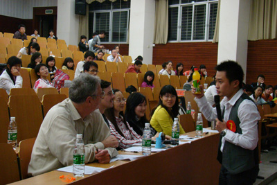 5月18日晚7点,由湘潭大学研究生会、研究生团委主办,亚洲精品国产精品、外国语学院及公共管理学院三院研究生分会、团支部共同承办的2010“晨曦杯”研究生英语口语大赛决赛在逸夫楼报告二厅精彩上演。经过初赛、复赛的层层选拔,共有来自十个学院的二十名选手在这场决赛中进行角逐。
