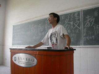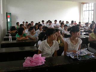 (本网讯)昨天下午2:30文新院“朝阳红”义务支教活动2008年辅导员招募复试正式开始。复试者自备临时课程5分钟,评委根据课堂的活跃性,生动性和吸引力从58位选手中选定28位。讲台上诸位复试者纷纷秀出百样课堂,坐席间评委和其余选手充当小学生“童心大返”,互动连连乐意融融。