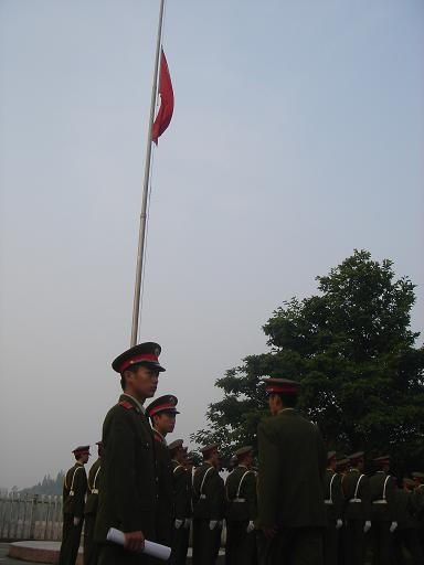 5月19日,在中国历史上也是一个不寻常的日子。为悼念汶川大地震中的死难者,全国为期三天的“哀悼日”正式开始。全国降半旗向死难者致哀,国民享国哀,国旗第一次为普通国民而降。这天,湘大的国旗同样降半,06广电一班见证了湘大的半旗之哀。