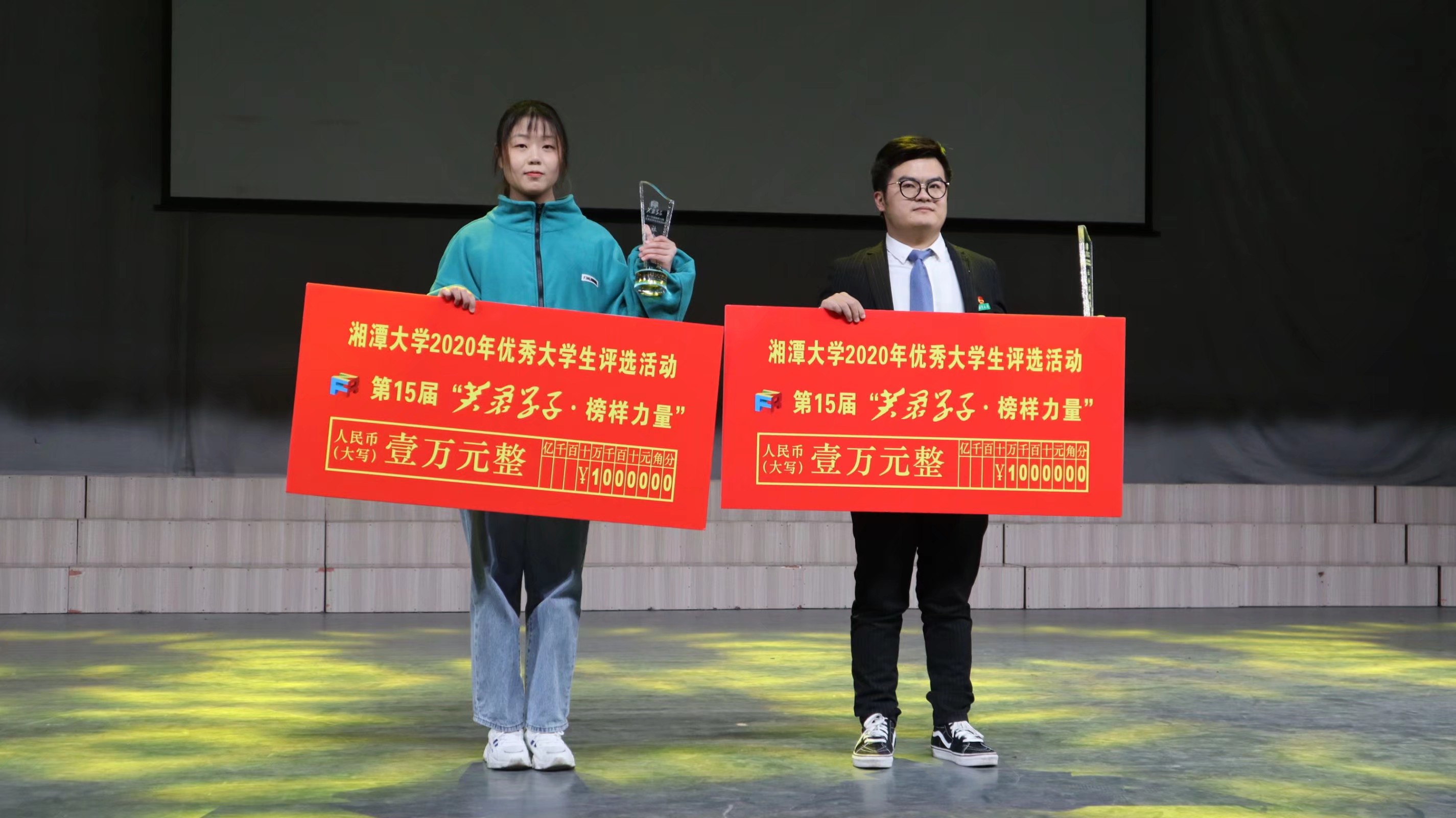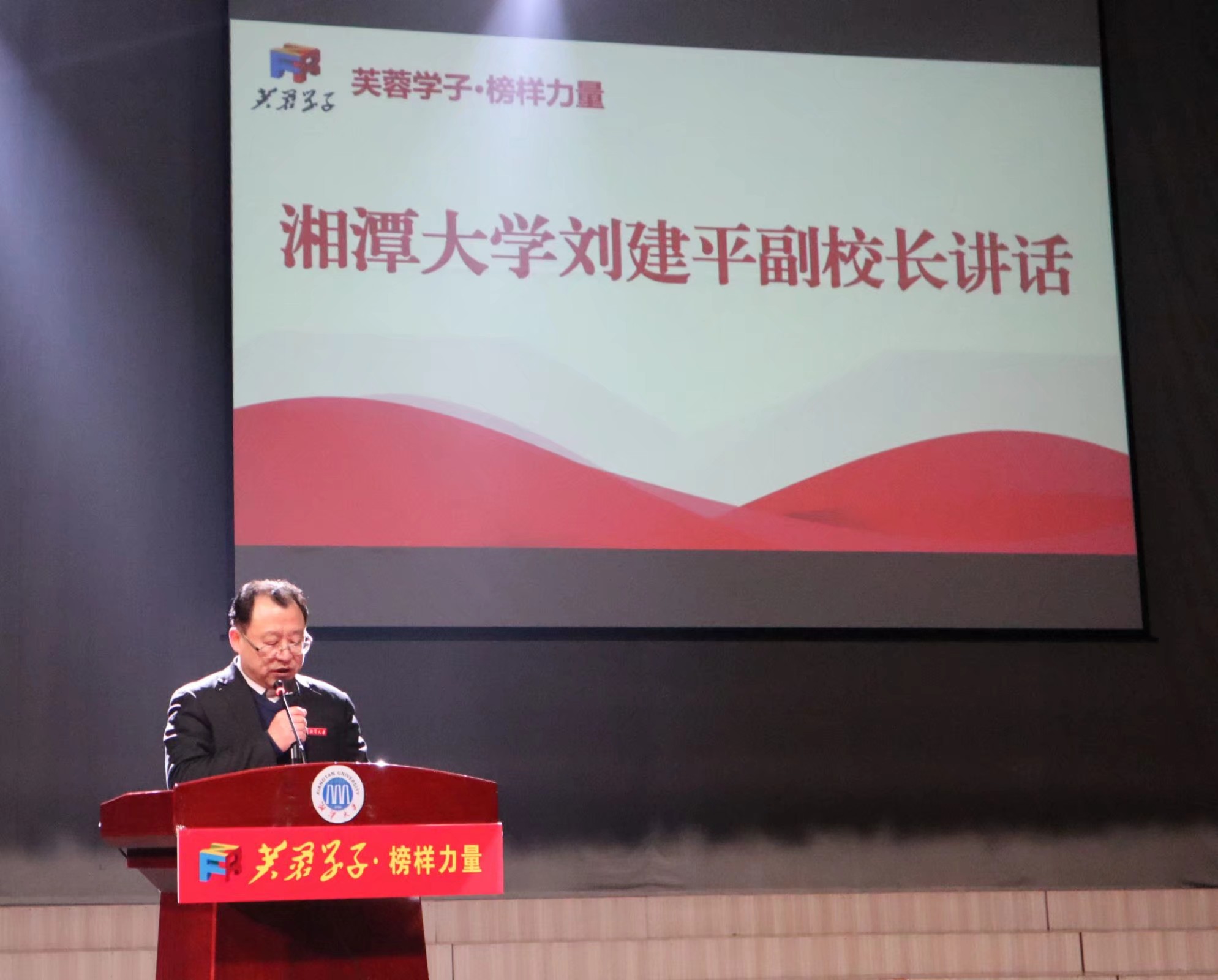 (文新通讯员:尹姝雯 李思艺)为发扬榜样力量、培养综合性人才、打造良好学习氛围,湘潭大学2020年“芙蓉学子·榜样力量”优秀大学生评选活动顺利进行。12月20日晚,“芙蓉学子·榜样力量”优秀大学生颁奖典礼暨宣讲会在湘潭大学学生中心报告厅召开。湘潭大学副校长刘建平,湖南省希望工程办公室、湖南省青少年发展基金会办公室主任兼学生资助部部长朱新根,共青团湘潭大学委员会书记魏晓林,湘潭大学学生工作部(处)副处长田良富和共青团湘潭大学委员会副书记伏帅等出席大会。
