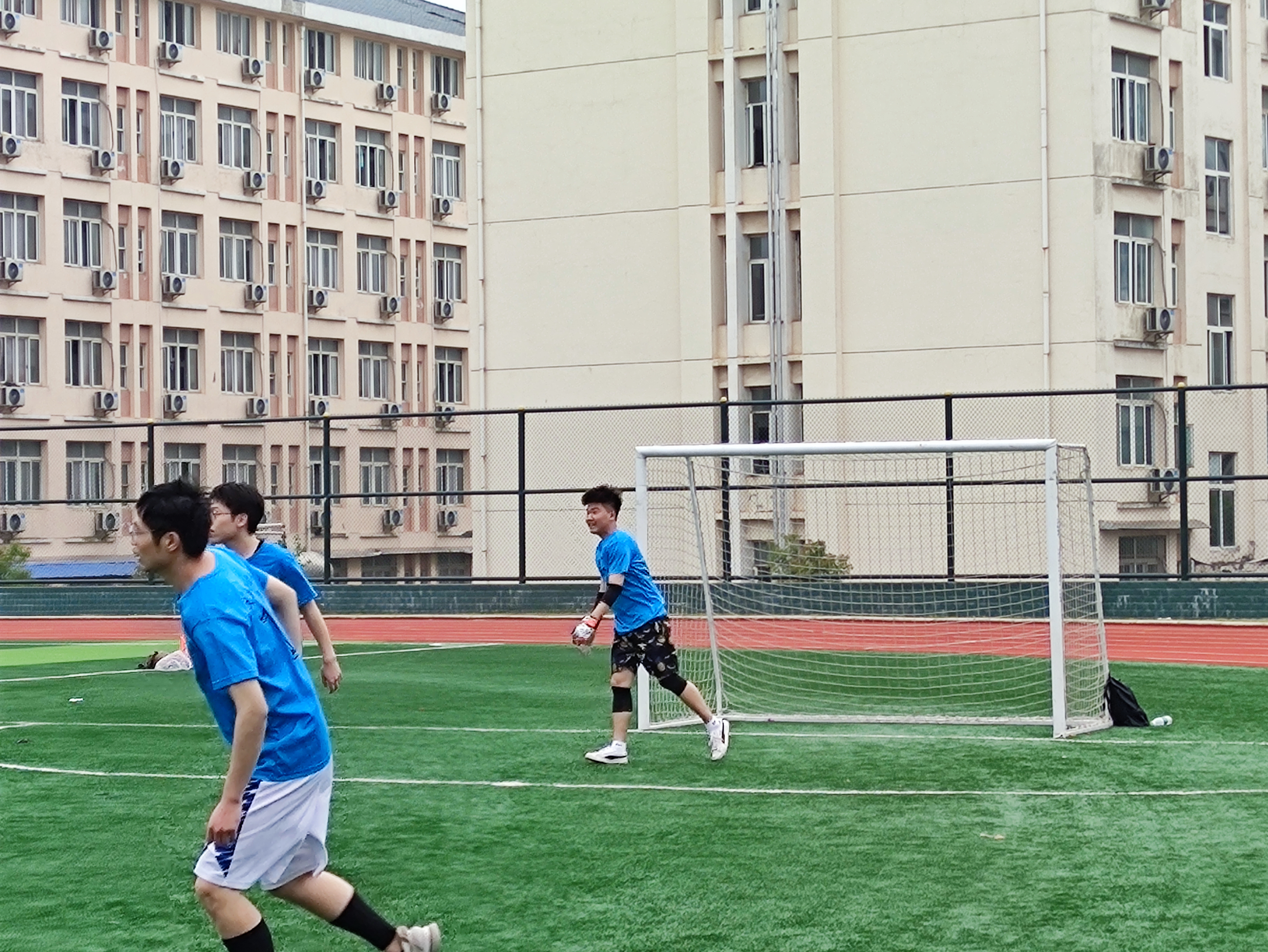 随着哨声吹响,两队队员进入赛场。我院的首发球员和材料院与环资院组成的联队队员们向观众致意,随后比赛开始。比赛上半场,我院大部分球员还未适应比赛状态,对方球员在前锋的带领下频频发起进攻,我方球员只得被迫回后场防守,但无奈攻势太猛还是被对方球员接连得手,最终以0比3结束了上半场比赛。下半场比赛队员们渐入佳境,在对手的攻势下开始表现得游刃有余。虽然对手在下半场再进一球,但是场上的球员们互相鼓励,不断地在前场给对方施加压力。终于,在最后时刻文新院队长冯戈锴连续过人,向对方的球门射门成功! 裁判员哨声响起,比赛以1比4结束。