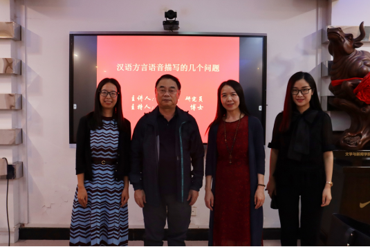 李莉亚博士首先代表全体师生对覃远雄教授的到来表示热烈欢迎,并对其学术成果做了简单的介绍:覃教授曾承担并完成国家社会科学基金项目《桂北平话语音历史层次及语言接触研究》,目前正在承担国家社会科学基金重点项目《语言接触视角下的广西汉语方言语音演变研究》。曾参加《现代汉语方言大词典》(综合本)、《中国语言地图集》(第2版)等的编撰。出版了《南宁平话词典》等著作,发表了《平话和土话》、《桂南平话主元音及韵母格局》、《广西南北平话的差异》、《汉语方言否定词的读音》、《部分方言否定语素“冇/冒”所反映的读音层次》、《两种作为声调特征的非线性成分——以桂北土话两个方言为例》等数十篇论文。