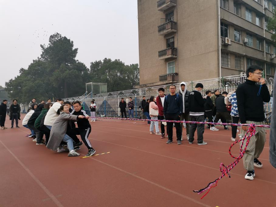 比赛现场,热火朝天。拔河现场的赛况已经进入白热化阶段,双方僵持不下,同学们的加油助威声此起彼伏。只见我院队员使出了全部力气,憋红了脸,奋力的守住红色的中线。