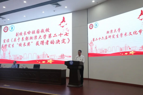 接着,喻祖国宣读《关于表彰湘潭大学第二十七届研究生“校长奖”获得者决定》,胡强宣读《关于表彰2021—2022年“湘韵之星”学术论坛获奖学院研会的决定》。