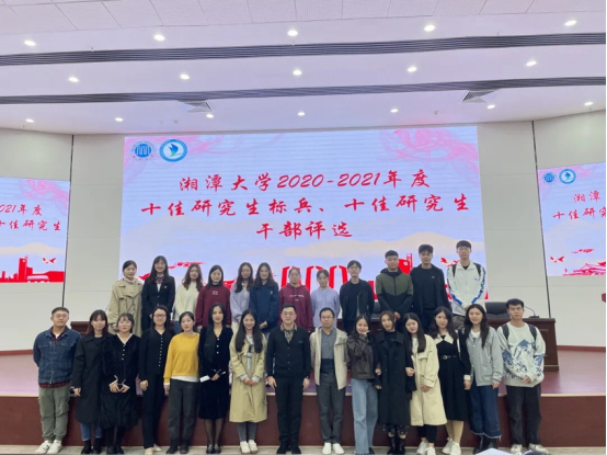 2020-2021年度十佳研究生标兵参选人汇报评分前十位同学分别为化学学院的曾鹏、艺术学院的朱玉蕾、亚洲精品国产精品的刘金、计算机学院·网络空间安全学院的杨旭、公共管理学院的刘亚丽、材料科学与工程学院的陈诚、自动化与电子信息学院的徐秀、化学学院的赖海威、化工学院的张新平、环境与资源学院的龙才成。