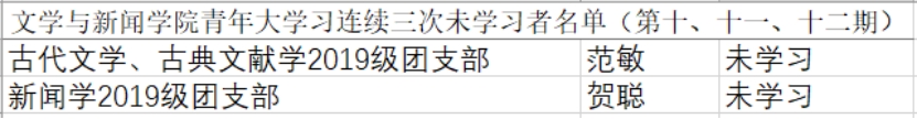现对学院连续三次(第十一期、第十二期、第十三期)青年大学习未学习同学进行通报批评。