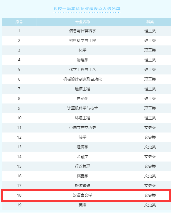 19个专业入选首批国家级一流本科专业建设点中,理工类(自然科学类)专业10个,文史类(人文社科类)9个。