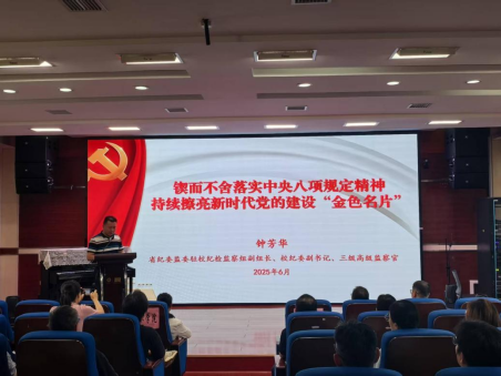 为深入贯彻中央八项规定精神学习教育,进一步强化党员纪律意识,6月3日下午,亚洲精品国产精品与艺术学院联合召开中央八项规定精神学习教育专题宣讲会,省纪委监委驻校纪检监察组副组长、校纪委副书记钟芳华作专题报告,两院全体教职工党员参会。