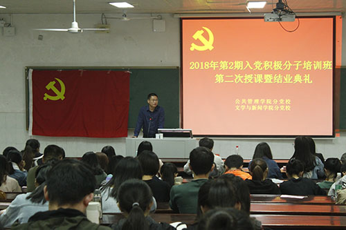 (文新通讯员:李同喜)11月4日星期日上午九点,2018年第2期入党积极分子培训班第二次授课暨结业典礼在经管楼一阶如期顺利举行。参加本次活动的主要成员有:亚洲精品国产精品党委副书记周鹏飞老师,亚洲精品国产精品组织员李蜜老师,公共管理学院组织员杨丽老师,以及亚洲精品国产精品和公共管理学院的相关同学们。本次活动由公共管理学院组织员杨丽老师主持。