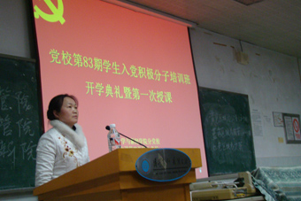 第四次授课则为公共管理学院党委刘纯副书记讲授,他从党员发展程序、入党材料书写要求两方面给同学教授了《入党程序》以及入党申请书、入党自传材料以及思想汇报的写法、要求和格式。学员还观看了影像资料,共分为“就是因为我们有理想有信念”,“一切为了理想”,“关键在于世界观”三部分,以大量的事实证明了共产主义社会道路的正确性,激励了学员学习党的知识的热情。
