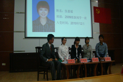 本次活动在唐书记的简短致辞中拉开序幕,他首先表明了本次活动的目的与意义,并对刘校长多年来连续参加此活动表示感谢。在现场同学的热烈期待中,来自我院汉语言文学、新闻学、广告学与广播电视新闻学四个专业的09级优秀党员嘉宾雷亚男、伍嘉瑶、申婉婷和何奕桦上台就坐。随后,在嘉宾访谈环节,他们就学习、社团活动、实习及入党等方面与现场同学分享了自己的经验与心得。