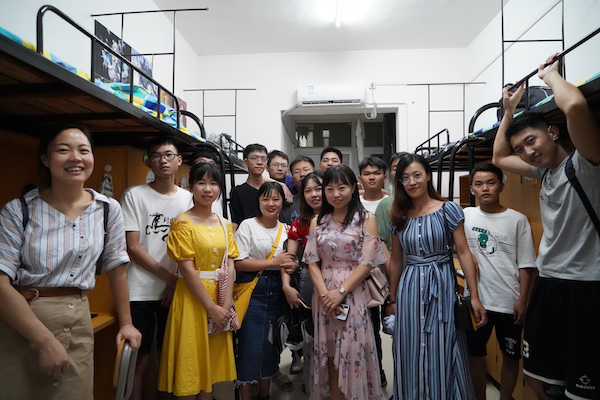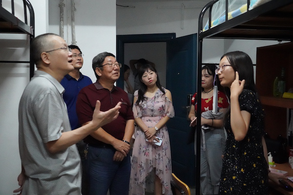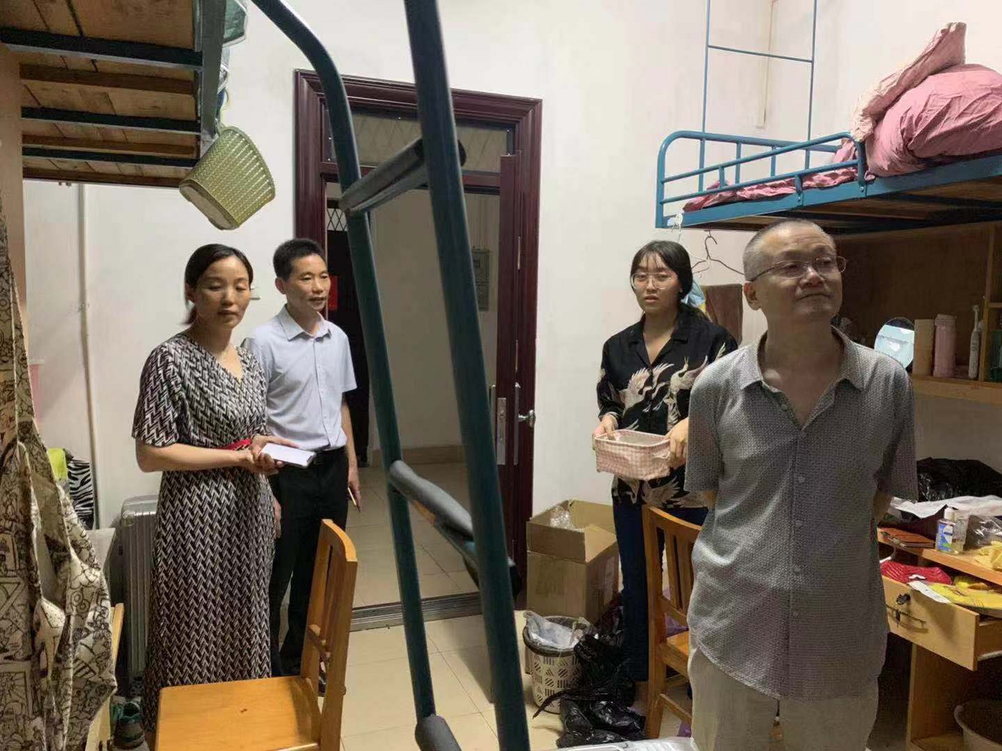 又是一年开学季,又是一载圆梦时,2019年亚洲精品国产精品喜迎来自全国近20个省市、自治区的新生。为全面了解我院新生的住宿和学习情况,帮助新生尽早适应新学校和新变化,8月29日晚7点,院长李剑波教授、院党委书记赵猛老师以及季多武副院长、周鹏飞副书记、田华副院长、刘晓丽副院长、团委书记管胜昔老师、研工办林瑜老师、新生班主任等老师与学生干部、新生辅导员一道,走访了新生宿舍,看望并慰问新生。
