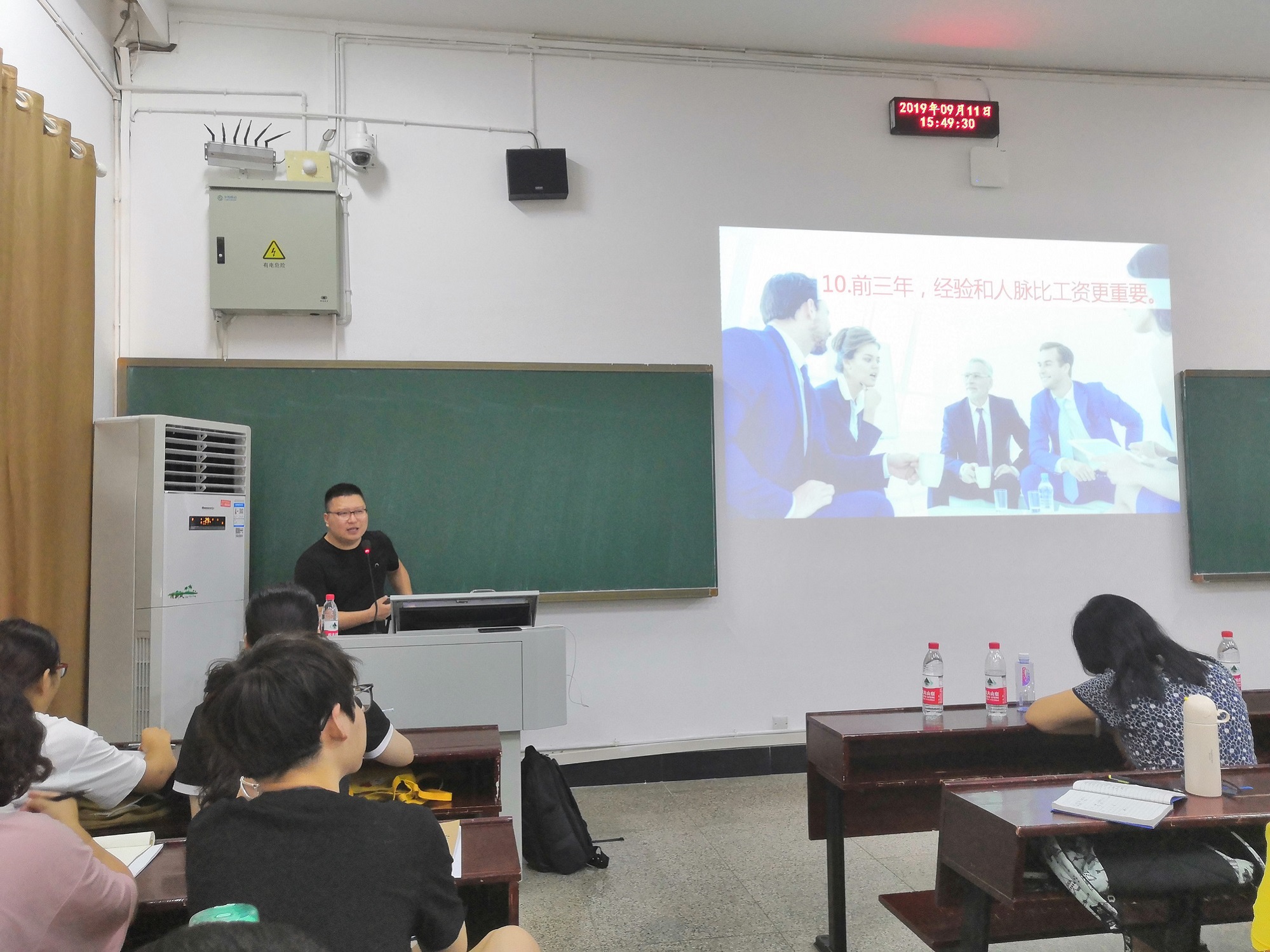 蔡兴国学长为同学们提出了“少做人生规划,多做技能规划”“PPT就是你的饭碗”“做一个管理者,从此刻开始,从自己开始” 等10条建议,贯穿自己的实习、工作与创业过程。通过自身真实经历举例,同学们对这些建议产生了更加深刻的认识与理解。他特别强调,主动学习能力决定了上升的空间和发展的天花板,可以让自己脱胎换骨。