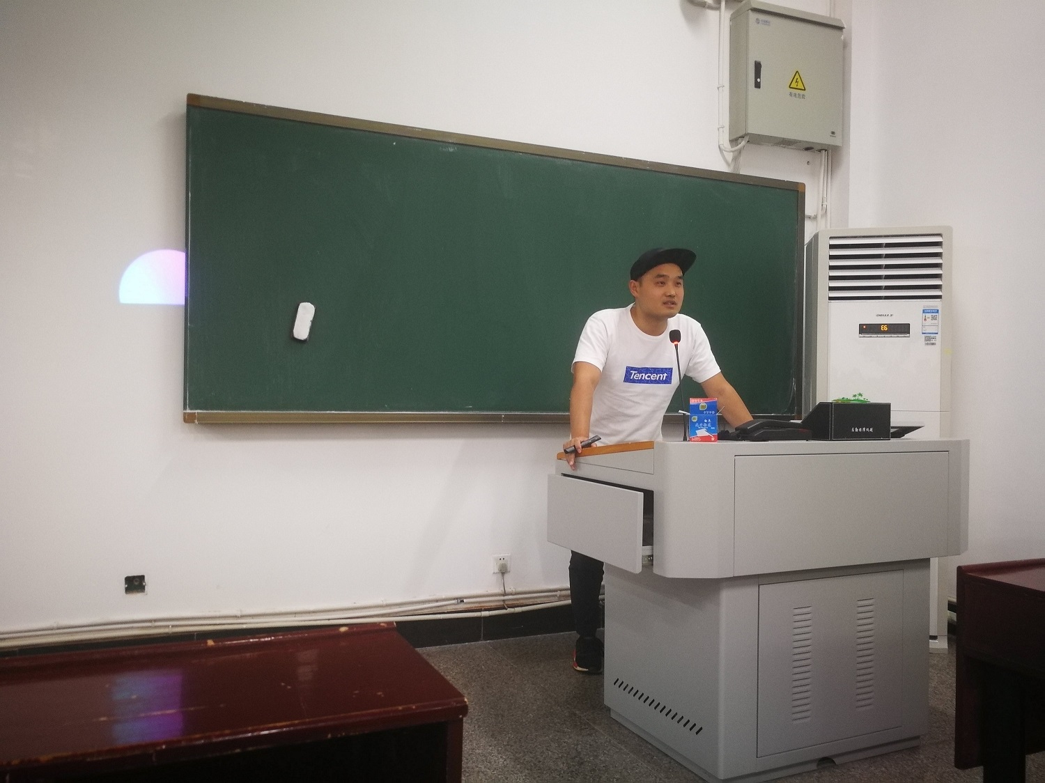 在讲座的最后,任老实与学生合影,希望学生加入到腾讯微视校园的活动并希望湘潭大学学子到腾讯实习,积极推动腾讯·大湘网与湘大的合作与交流。