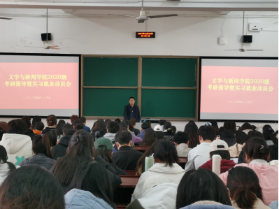 为进一步提升学生的综合实践能力,增强学生职业意识,4月25日下午,我院在逸夫楼四阶教室召开2020级考研、实习动员会。院党委副书记周鹏飞、副院长刘晓丽、各系系主任、实习带队教师、全体2020级本科生参会参会。会议由中文系副主任彭慧主持。
