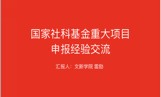 6月20日下午,学校社科处组织召开了国家社科基金重大项目申报经验交流会,我院雷磊院长、宋德发副院长、雷励教授受邀参加,参加会议的有学校各人文学院院长、科研副院长和有意愿申报国家社科重大项目的相关教授。会议由社科处欧定余处长主持。