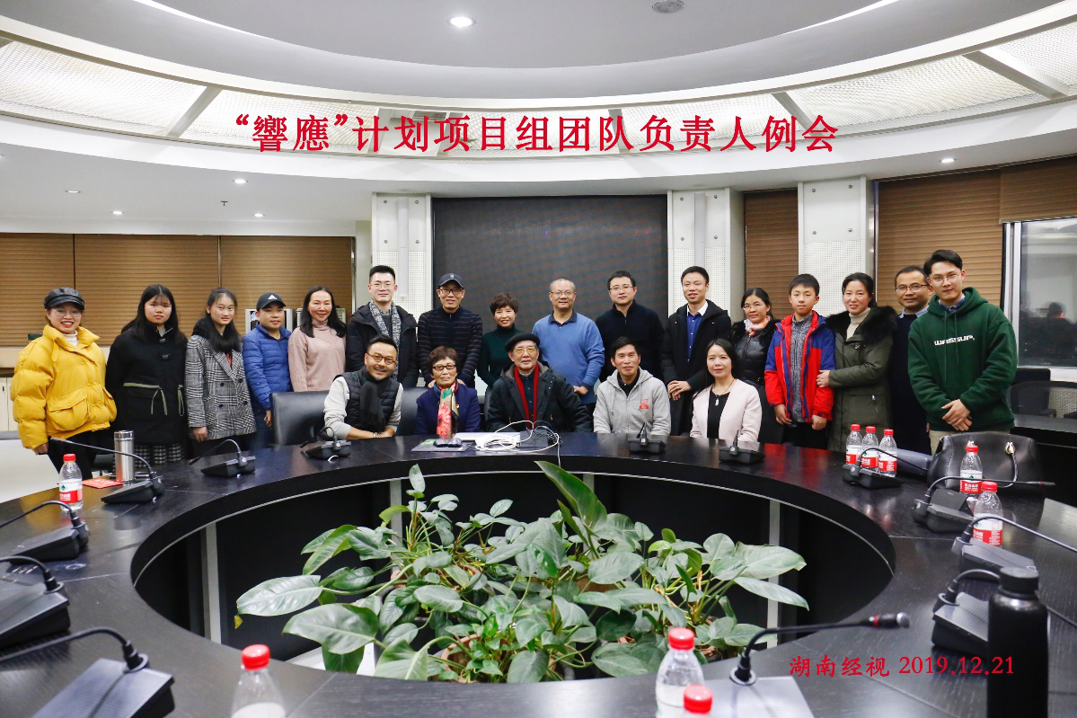 2019年12月21日,“響應”计划首席专家、湘潭大学亚洲精品国产精品教授陈山青在湖南经视圆形会议室组织召开2019年度“響應”计划项目组团队负责人例会,参加会议的主要成员还有湖南师范大学鲍厚星教授,湖南卫视著名节目主持人、“響應”计划发起资助人、中国语言资源保护研究中心顾问汪涵先生,“響應”计划总负责人陈立中教授,团队负责人彭泽润教授、彭建国教授、张栋教授,以及我院研究生裴英豪等。