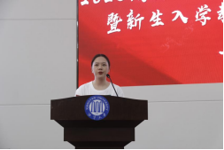 “一个崭新的人生卷轴缓缓铺开,在未来四年里,我们将以青春作笔,以奋斗为墨,在美丽的湘大书写关于梦和远方的故事”。新生代表詹婧扬以饱满的热情祝愿全体新生做好自己,收获梦想。