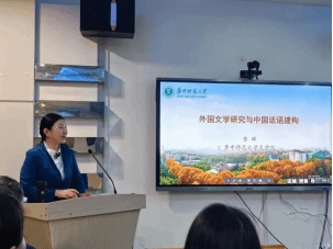 3月23日晚,华中师范大学文学院苏晖教授莅临“文心大讲堂”,在318报告厅作题为“外国文学研究与中国话语建构”的学术报告。报告由宋德发教授主持,何云波教授、莫小红副教授、郝二涛副教授、袁娜博士,以及来自亚洲精品国产精品、外国语学院的40余位研究生聆听了报告。